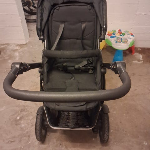 Britax barnevogn i svart farge. Barnevognen har justerbar ryggstøtte, stor kalesje og sikkerhetssele. Den er utstyrt med håndtak og oppbevaringskurv under setet. Passer for barn og gir god støtte og komfort under bruk.