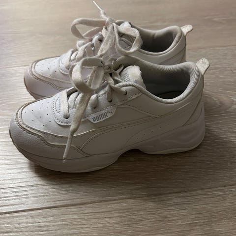 Puma barne sneakers i størrelse 30. Unisex modell i svart farge med hvit såle. Skoene har borrelås og snøring for justering og komfort.