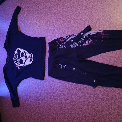 Mom jeans i mørk grå/svart farge med høy midje. Knapper foran og frynser nederst på bena. Merket str. 42, men liten i størrelsen.