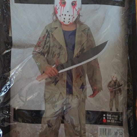 Unisex hvit hockeymaske laget av plast. Masken har hull for øyne og pust, samt justerbare stropper. Modellert etter Jason Voorhees fra de ikoniske Friday 13th-filmene.