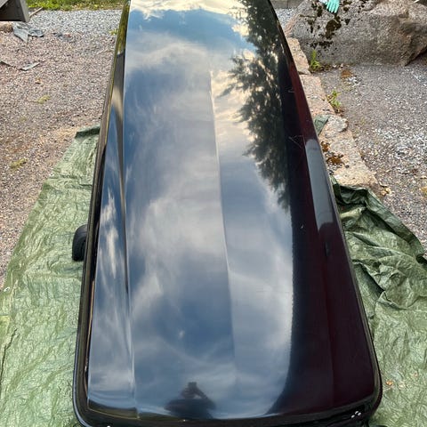 Ettersom stativet har vært brukt inne i tunneler på skiboks, mangler gummilistene oppe på stativet. Fullt brukbart uansett.