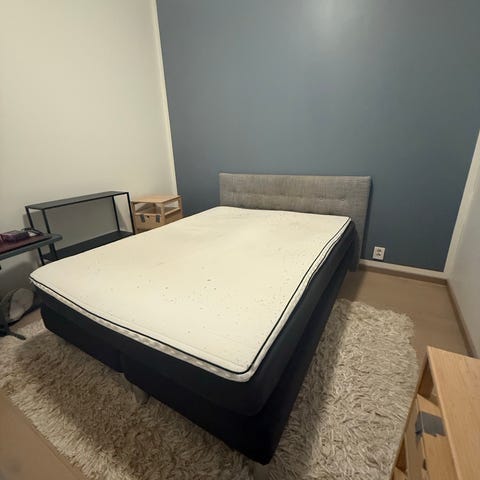 Seng i 150x200 med madrass fra jysk gis bort grunnet flytting. Senga er en utgått modell, minner om den på første bilde. Eneste forskjell er at den aktuelle senga er todelt. Merket er Dreamzone. Noen synlige flekker.