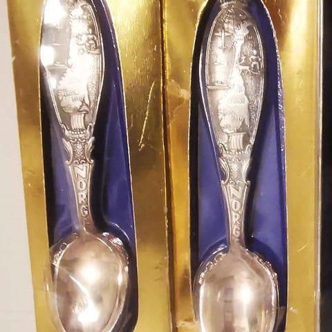 2 stk vintage suvenirskjeer fra Norge – sølvplett, T.K. 60 GR.