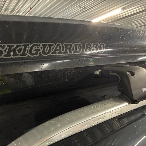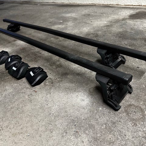 Thule takstativ med tilbehør for montering. Laget av metall og plastmaterialer.