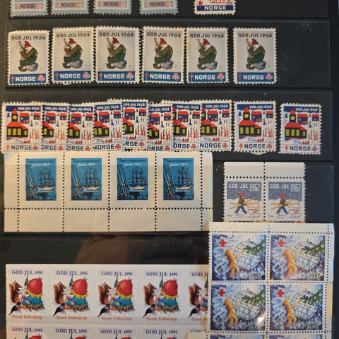 Pent eksemplar med frimerker. Inneholder for eksempel Norge 1 frimerker, som er de første frimerkene som ble lagd i Norge.