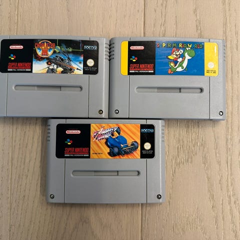 En rekke spill til Super Nintendo selges. KI har bidratt til å skape listen, forbehold om feil, prisene på bildet er gjeldende.