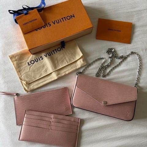 Sort Louis Vuitton kortholder i kornet skinn (til Felicie-modell). Klassisk og minimalistisk design med flere kortlommer, perfekt som ekstra kortholder til veske eller separat liten lommebok.