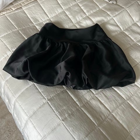 Bik Bok svart skjørt i størrelse XS laget av polyester. Skjørtet har et mønster med hvite blomster og en elastisk midje. Passer til kvinner.