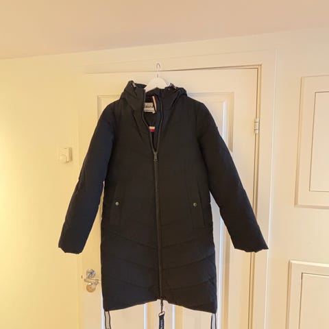 Jean Paul Annet yttertøy dunjakke i størrelse XS for dame. Jakken er marine blå og laget av dunmateriale. Den har hette med pelsdetalj og glidelås foran. Passer til bruk som yttertøy i kaldt vær. Har også refleks inni som man kan ta ut når man går i mørket