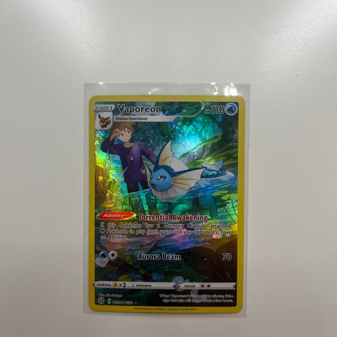 Pokémon kortsamling bestående av Leafeon V, Victini V og Charizard V. Kortene har ulike angrep og HP-verdier, og brukes i Pokémon-kortspill.