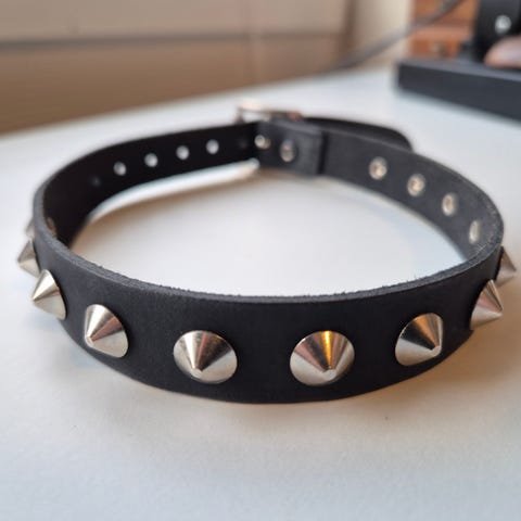 Svart justerbar choker med sølvfargede spikes.