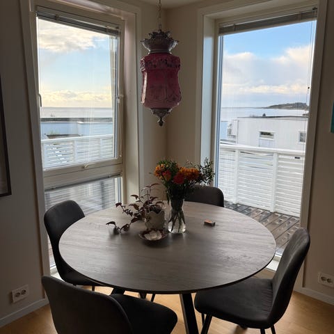Er som på bildene ikke noe mer eller mindre, brukt ett år ca veldig fine spisestoler