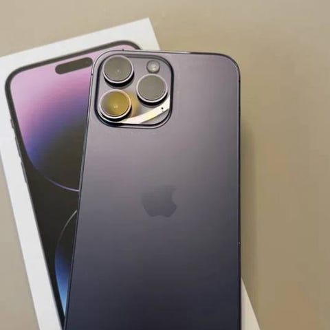 iPhone 14 PRO MAX med 128GB lagringskapasitet, lilla farge - klargjort for salg.