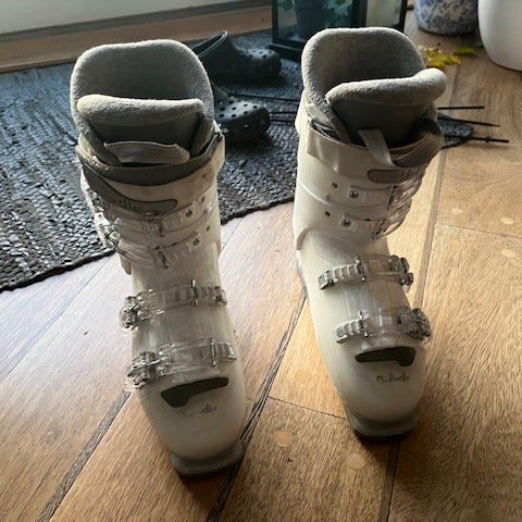 Pent brukte dameskistøvler fra Dalbello, kjøpt nye i sportsbutikk i 2017.