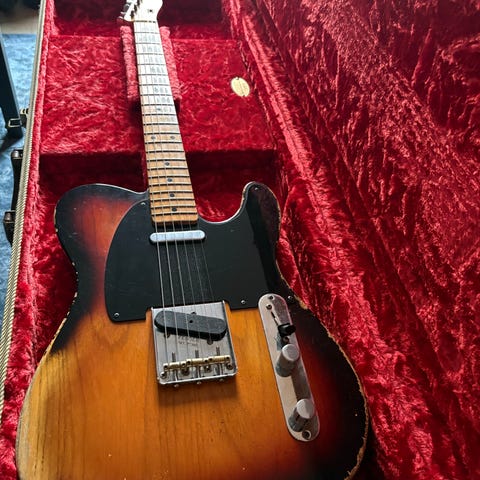 Ettertraktet model. Fremstår med mild patina og fin "look" - men ikke slitt. Bilder er tatt med macro objektiv og godt lys, så bildene ser værre ut enn gitaren er i virkeligheten. Men vil vise alle hakk og merker. De er alle små, men tydelige studerer man gitaren nært. Modellen er en "Crafted in Japan" modell (CIJ). I følge serienummer er gitaren laget mellom 1997-2000. Så naturlig at gitaren har noen merker her og der.