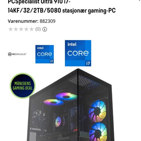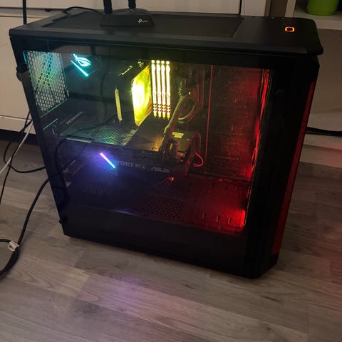 Desktop med Intel Core i7-8700 prosessor på 3,20 GHz, 32 GB RAM på 3600mhz fra Corsair, og NVIDIA GeForce RTX 3080 grafikk med 10 GB minne. PC-en har RGB-belysning og flere tilkoblingsmuligheter bak. Har kun 256gb SSD minne. Strømforsyningen er Corsair RM650i. Hovedkortet er Asus Strix B360-F Gaming mens kabinettet er fra Phanteks. Wifi kort er også installert. Egnet for krevende databehandling og spill.