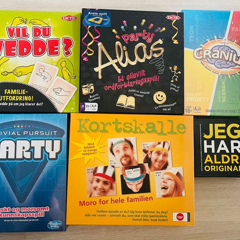 7 spill som på bildet (alle unntatt tvister) selges for 200kr
