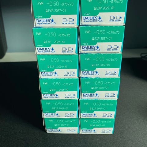 Kjøpt på Synsam i desember 2025 for kr 870. Selger for kr 500 (åpnet pakke med to linser i minus)