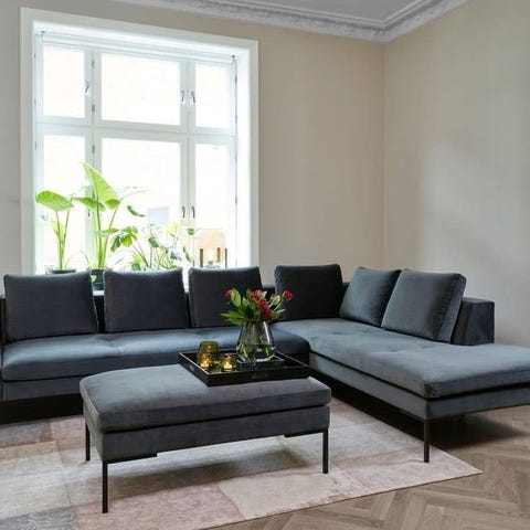 Sofaen kan deles i 3 for transport. Se fysiske mål på bildet.