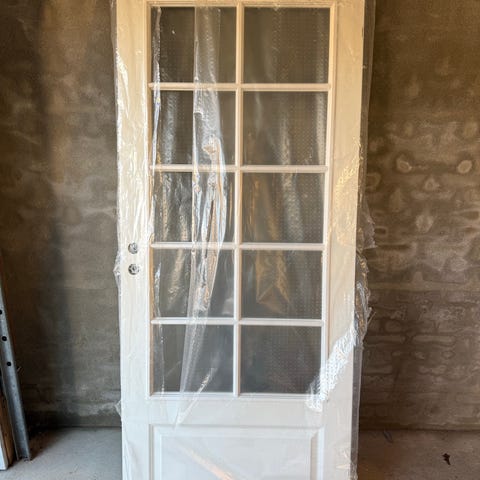 Døren er 72,5 x 204 cm og 4 cm tykk