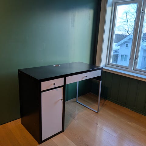 Bordet er nesten nytt. Lite bruk og ingen skader eller riper. Bordet kan brukes som enten arbeidsbord eller sminkebord .