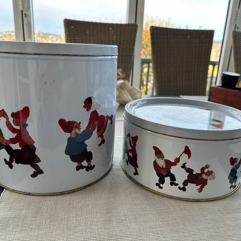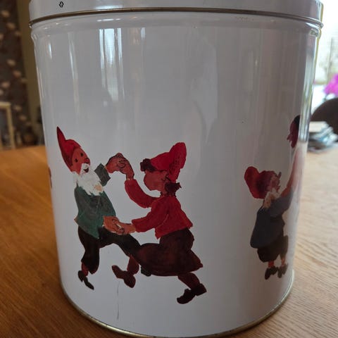 🌲Flott gammel retro kakeboks med motiver laget av Torbjørn Egner i 1942.