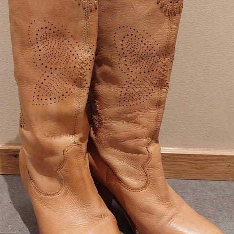 🤠 Yiiihaaa! Lekre cowboy boots i semsket skinn selges 👢✨