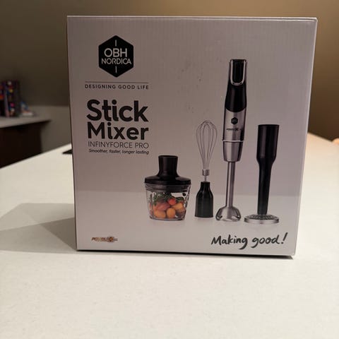 Brukt et par ganger, selges fordi vi har en to stavmikser og likte best den andre.