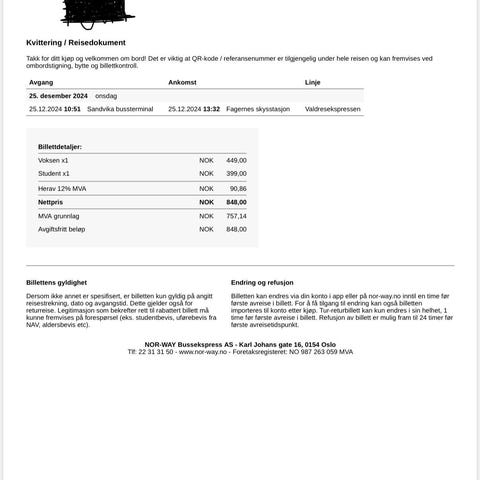 Bussbillett fra Åsane terminal til Volda rutebilstasjon 29.12.25