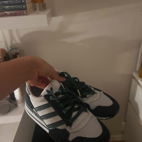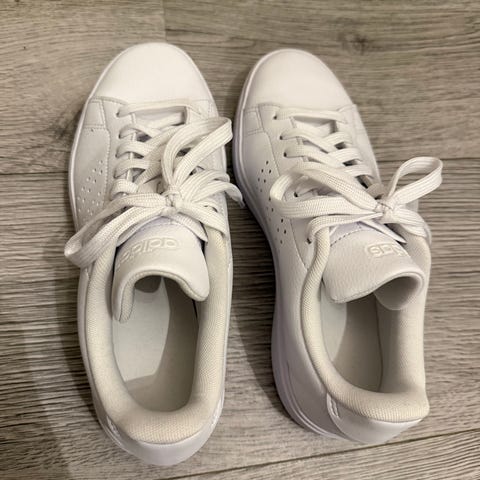 Adidas Sneakers joggesko i størrelse 39 hvit farge. Skoene har en klassisk design med Adidas-logo på framsiden og sidene. Materialet er syntetisk og tekstil, med gummisåle for godt grep. Egnet for hverdagsbruk og lett trening.