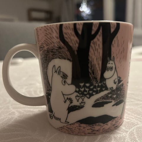 Arabia Mummi kopp i keramikk med dekor av Mummifigur. Egnet for daglig bruk til varme drikker.