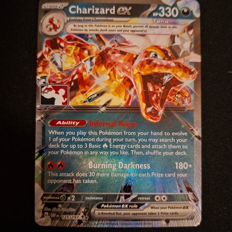 Charizard ex, 125/197, Prize Pack, Play! Pokémon, Holo, Holofoil, Double Rare, Obsidian Flames, Pokémon TCG, Pokémon kort, Samlekort, Trading Card, Samlerkort, Limited Edition, Event kort, Spillkort, NM, Near Mint, LP, Lightly Played, Sjeldent, Raritet, Pokémon samlerkort, Kortspill, TCG, Pokémon collectible, Charizard kort, VMAX, EX, Promo card, Tournament card, Pokémon league, Official Pokémon, Rare Pokémon, Foil card, Pokémon fan, Pokémon collection, Pokémon hobby, Pokémon battle, Pokémon league prize, Play! Pokémon event, Pokémon prize pack, Pokémon ex card, Pokémon holo, Pokémon double rare, Collectible card, Pokémon trading card, Charizard collectible, Pokémon event card, Pokémon tournament, Pokémon fan item, Pokémon giveaway, Pokémon legendary, Pokémon artwork, Pokémon series, Card collector, Pokémon game, Pokémon memorabilia, TheStøffis