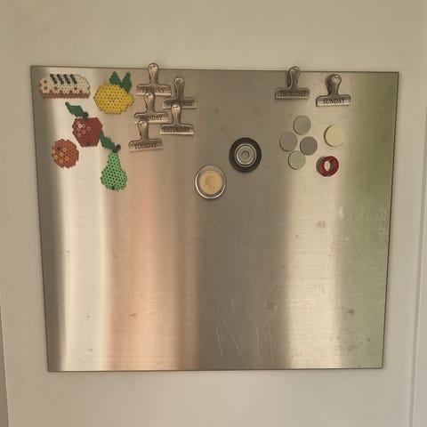 2 stk. magnetiske tavler med magneter, selges 100,- per stk eller 150,- samlet. Mål: 37x78,5. 40x59