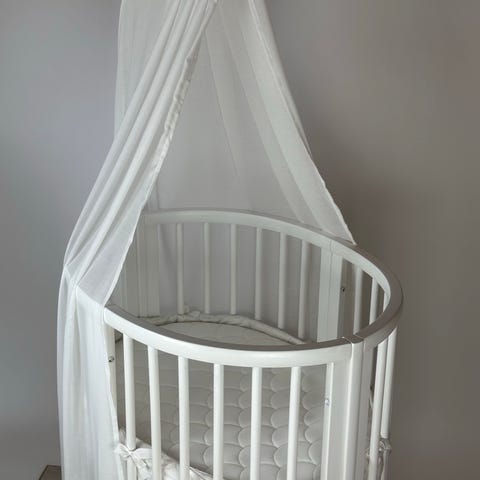 Stokke Sleepi Sprinkelseng med 2 madrasser og forlengelse + sengehimmel