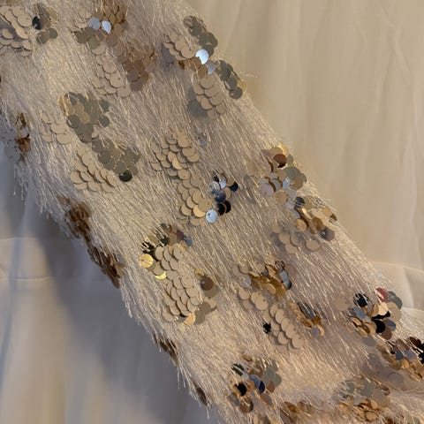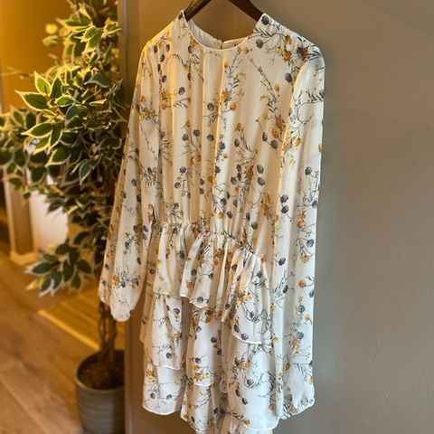 Helt ny hvit kjole. Mønster i stoffet. Størrelse 38