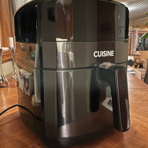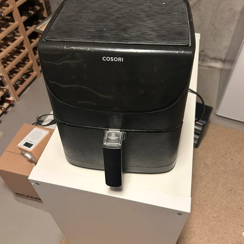 Cosori Airfryer med digitalt kontrollpanel. Kompakt design med flere forhåndsinnstilte matlagingsprogrammer, temperatur- og tidstilpasning. Passer til tilberedning av ulike matretter med varmluftsteknologi.