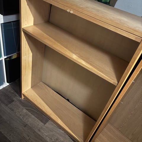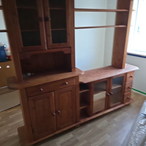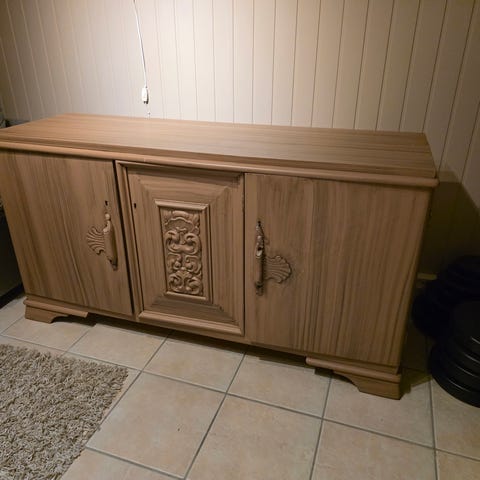 Pent brukt hvit konsoll med glass plater opp på den, men mangler 2 nøtter under beina se på bilde. Kan kjøpe fra Julla.