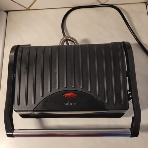 Kitchen Gear Grill Maker egnet for tilberedning av grillede smørbrød og lignende matvarer. En praktisk kjøkkenmaskin designet for enkel og rask grilling.
