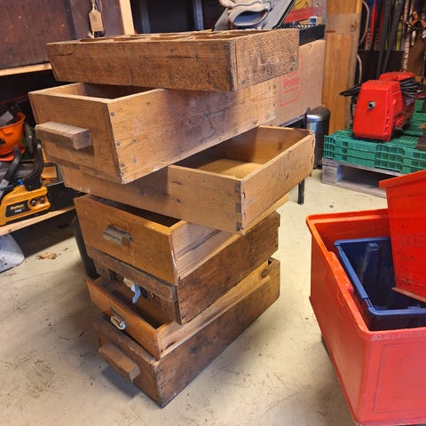 Selger to håndlagete CD- hyller som har stått på Neseblod records i over 20 år. Hyllene ble kjøpt fra Akers Mic i Akersgata da de gikk konk i 2004.