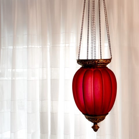 måneskinnslampe, rosa, antikk glasskuppel, jugend, art nouveau, satengglass, opalin, zinkarmatur, orientalsk motiv, traner, parafinlampe