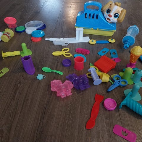 Får med bokser til plastelina også. Ligger i tette bokser. Men kvaliteten kan ikke garanteres. Men er utstyret som selges. Kan følge med om ønskelig.
