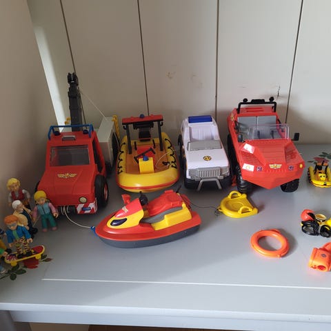 Samling med Brannmann Sam leker Diverse kjøretøy, figurer og småting/ek.strautstyr. Pent brukt!