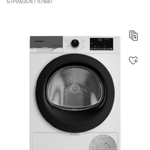 Selger en pålitelig og energieffektiv GRUNDIG GTN 38110 G kondenstørketrommel med 8 kg kapasitet. Perfekt for familier som vil ha god tørkekapasitet uten å sprenge strømregningen.