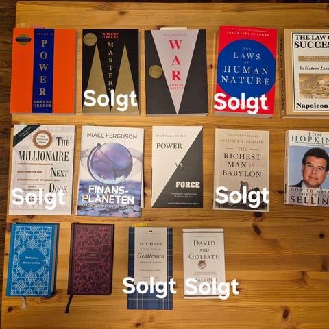 Robert Greene Power bok i paperback med rød og blå omslag. Boken fokuserer på temaer som makt, strategier og menneskelig atferd, og inneholder 430 sider.