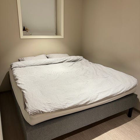 Gjesteseng selges pga lite bruk. Den er lite brukt og er i god stand, den er komfortabel og grei, overmadrassen må ikke være med i kjøp om man ønsker det. Bein kan skrus av og på, enkelt og greit seng. Sengen er 90x200cm, tykkelse 31cm,