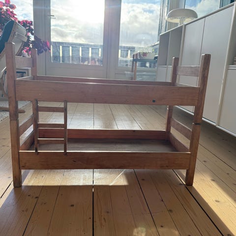 Retro skolebenk til bamsene. Ca.10 cm høy og 22 cm bred. Kan leveres i Oslo eller sendes.