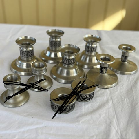 tinn, vikinger, vikingmotiv, hytte, hyttedekor, lysestaker, skål, nordisk, retro, vintage