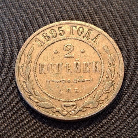 Russisk 1 Kopek mynt fra 1903 med detaljerte inskripsjoner og emblem. Mynten er laget av metall og har historisk verdi.