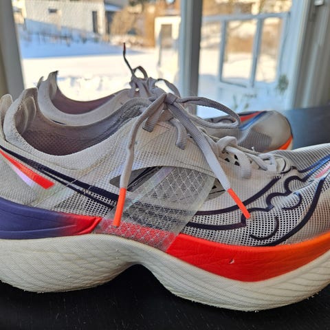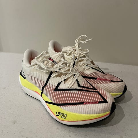 Xtep 160x 6.0 PRO er en av de aller råeste konkurransemodellene, men også veldig godt egnet til en intervallsko. Lav vekt, enorm responsivitet og ekstremt god slitestyrke til å være konkurransesko. Har flere par og selger derfor ett av dem (de nyste). Skoene kjøpt for 3799kr. Har kun blitt brukt på mølle for testing - 2-3 ganger.
