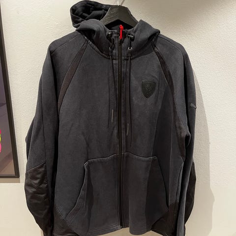 Stilig Scuderia Ferrari Formel 1 jakke i størrelse M i fra Puma, laget av polyester. Den har flere broderte logoer og detaljer knyttet til Ferrari-merket. Team jakke fra 2024 sesongen.